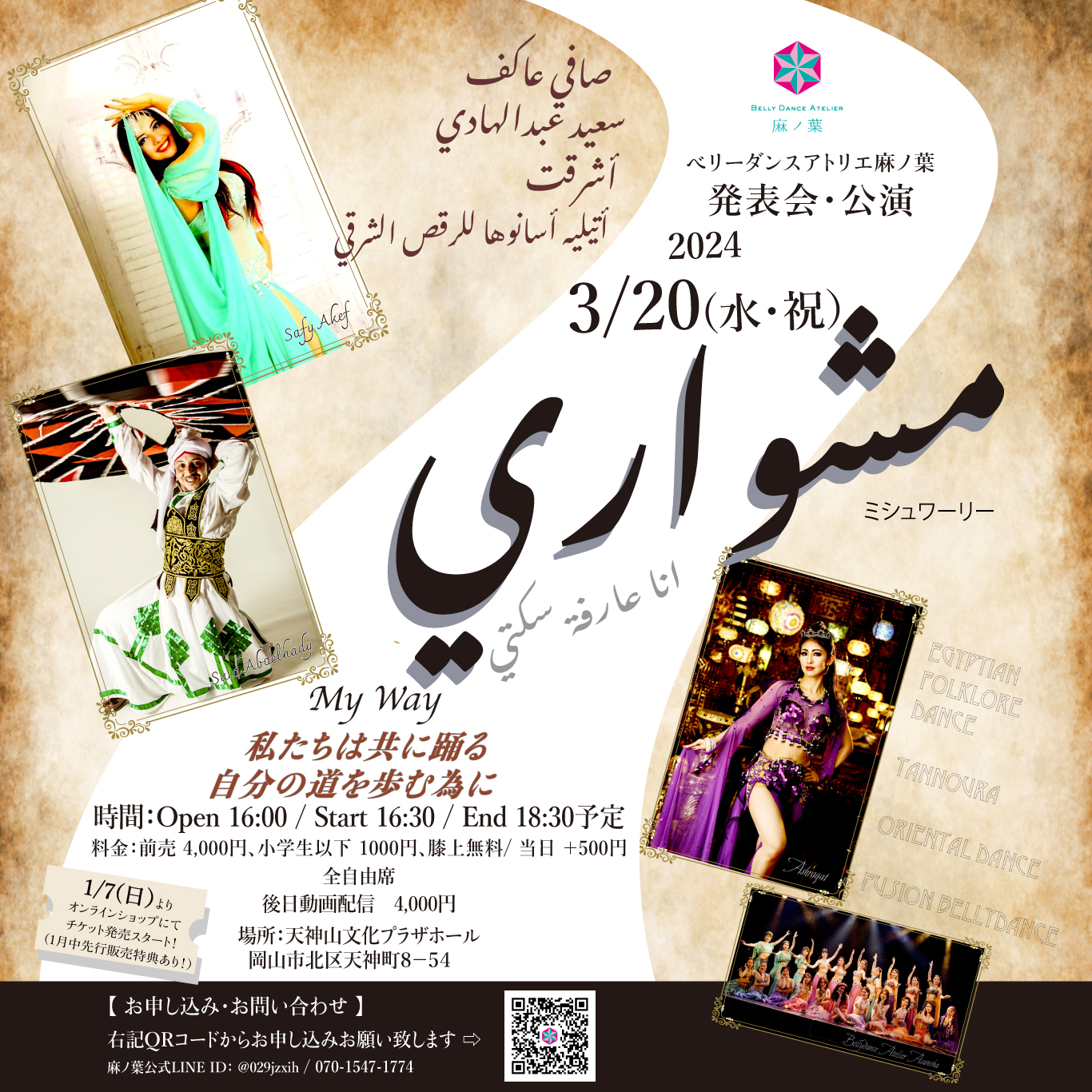【2024/3/20(水・祝)ベリーダンスアトリエ麻ノ葉発表会・公演 ミシュワーリー】