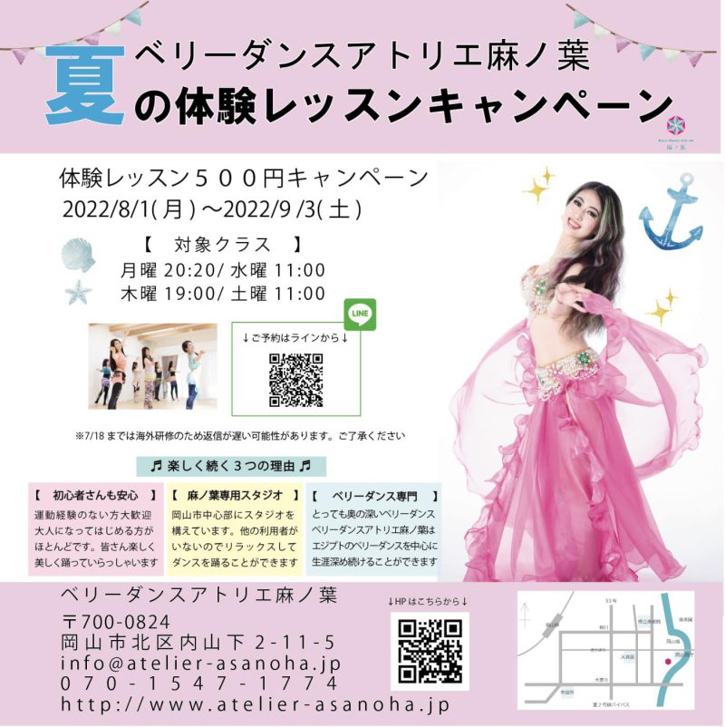 ベリーダンスアトリエ麻ノ葉は4/22(火)より新曲スタートのため、新規生徒募集いたします 岡山市北区内山下のベリーダンス専用スタジオにより毎週レッスン開催しています ・オリエンタルな雰囲気が好きな方・ […]