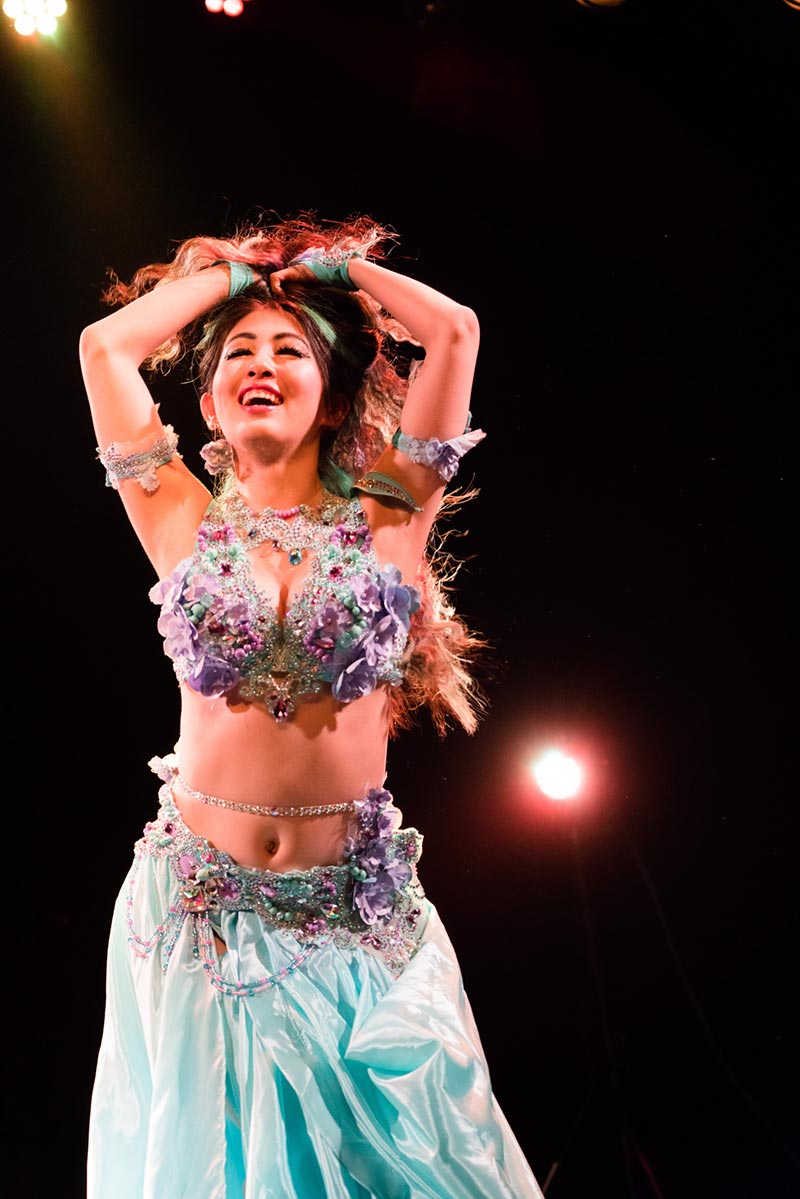 ベリーダンスのオリエンタルスタイル、ジプシースタイル、フュージョンなど様々なスタイルを学び、追求しながら、自由な表現の可能性を探し、学び、シェアしていきます。体の芯を大切にし、じっくりとした反復的なレッスンに重きを置きつつ、エネルギーの流れや、身体の楽な在り方、「ヒト」が持つ本来の美しさを追求します。また、音楽の理解を深め、愛し、インスピレーションを大切にするため、生演奏との稽古の機会なども定期的に作り、自分の耳や、感受性を育てましょう。さらに、ベリーダンスの枠に捉われない、アートな感覚も磨き、発信していきます。