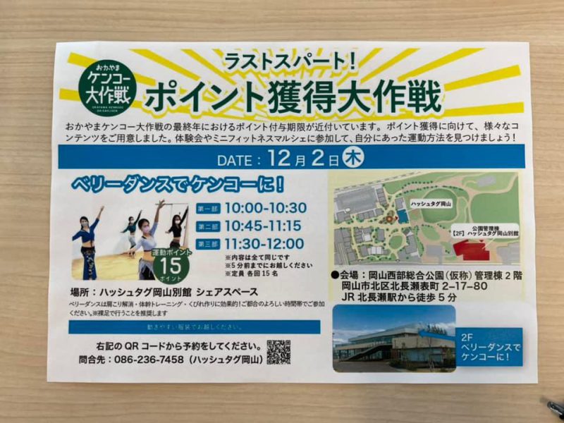 今日は朝からおかやまケンコー大作戦さんの ベリーダンス でケンコーに!で 講師をさせていただきました♬ ご参加くださった皆様、岡山ケンコー大作戦の皆様 ありがとうございました!! 帰りがけに嬉しいお声 […]