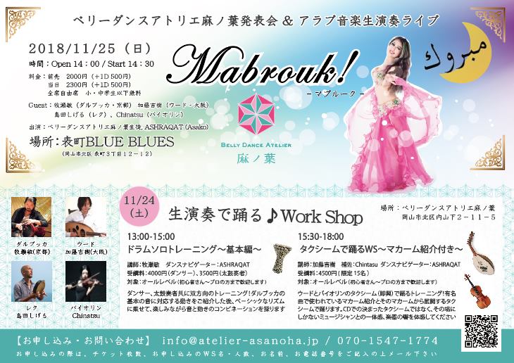 あと1週間となりました!発表会&生演奏Live11/25(日)Mabrouk!