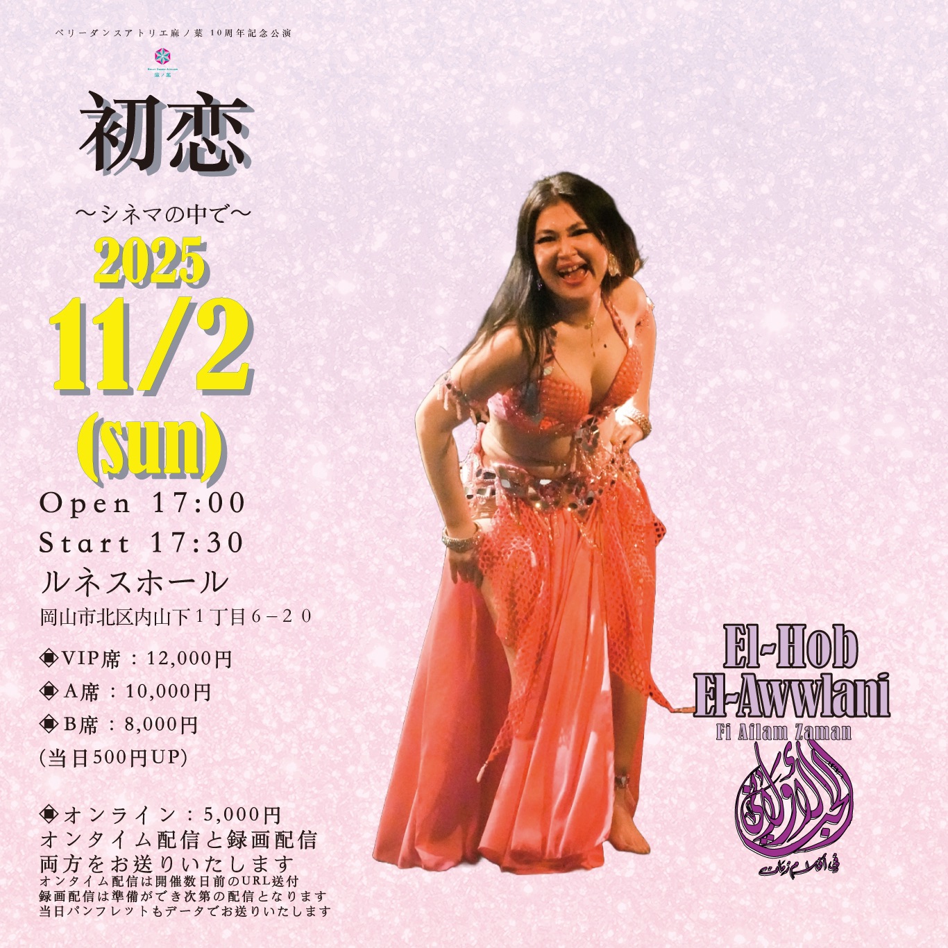 11/2(日)ベリーダンスアトリエ麻ノ葉 10周年記念公演初恋 〜シネマの中で〜El-Hob El-Awwlani Fi Aflam Zaman 🎫前売りチケットについてのご連絡です🎫 ・前売り券は1 […]